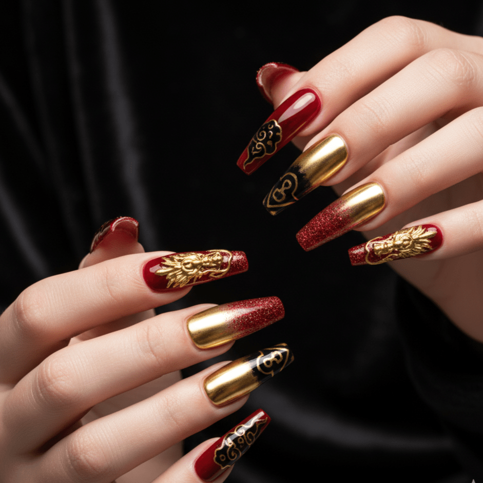 For the one who actually enjoys CNY — the food, the chaos, the four-hour mahjong sessions. Your nails should match your energy.