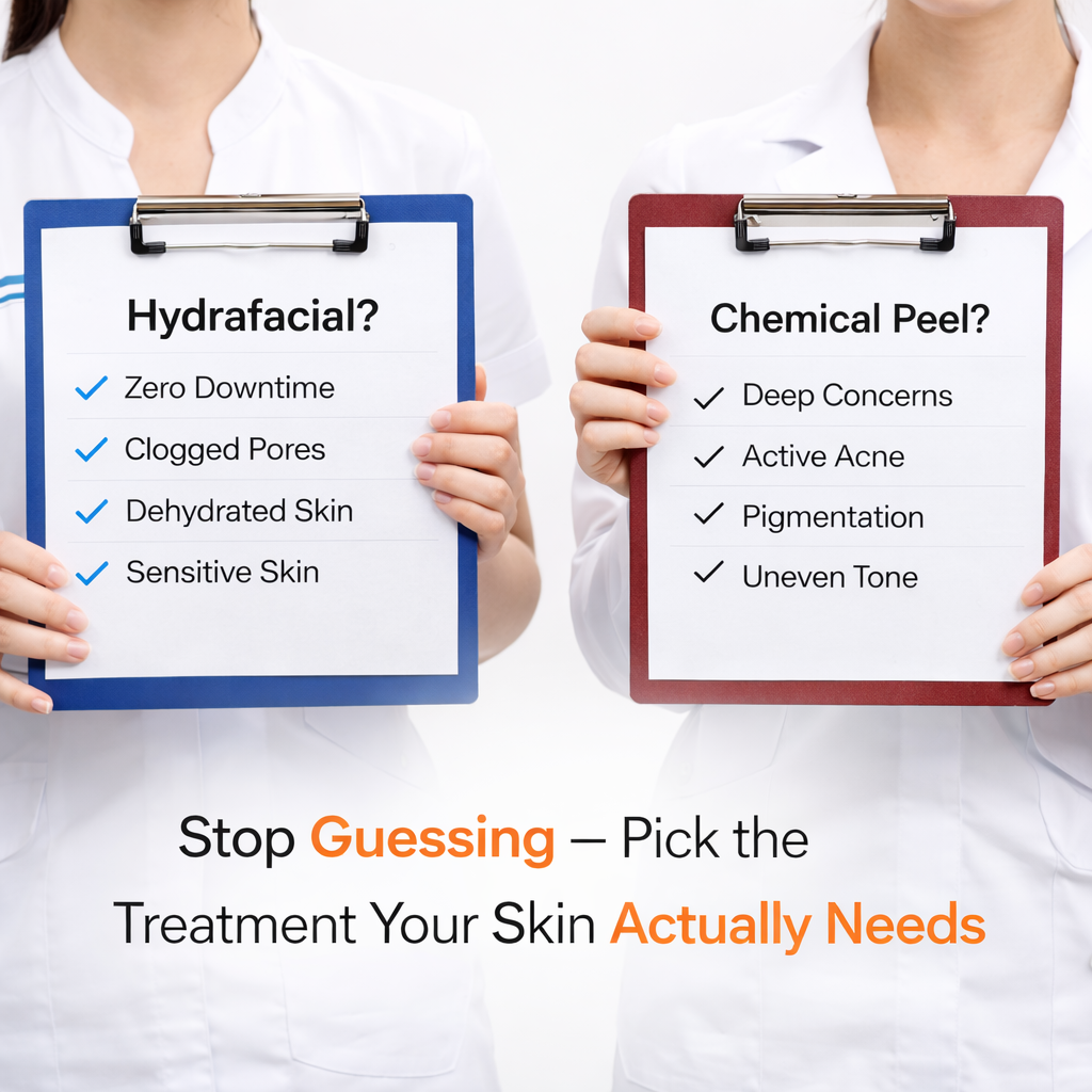 HydraFacial gives you a glow you can show off at dinner the same night. A chemical peel might have you hiding indoors for a week. But three months later, those acne scars you’ve had for years are fading. Same category, completely different treatments. Here’s how to tell which one your skin actually needs.