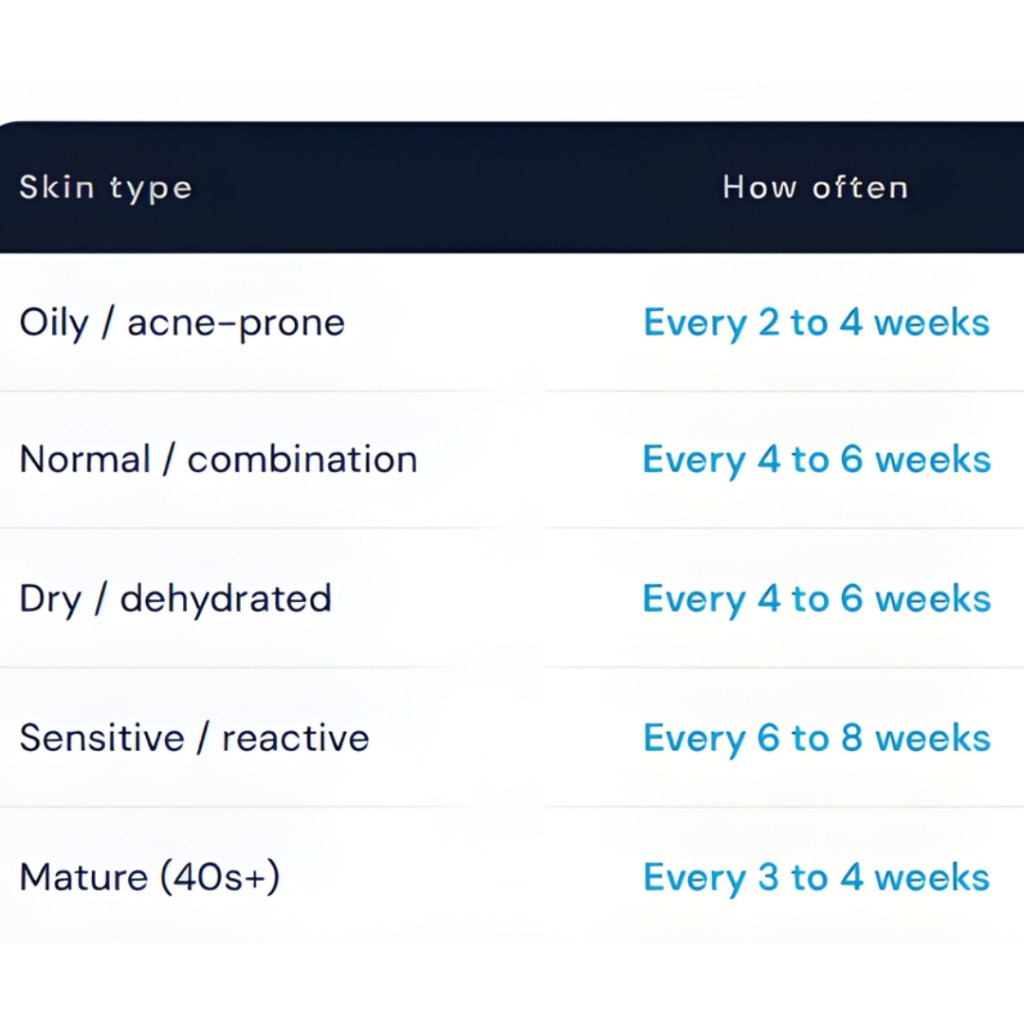 The clinical answer: every 4 to 6 weeks. This is not a number the beauty industry invented. Most dermatology professionals recommend getting a facial every 4 to 6 weeks because this timing aligns with the skin’s natural cell turnover cycle, which takes approximately 28 to 40 days.
