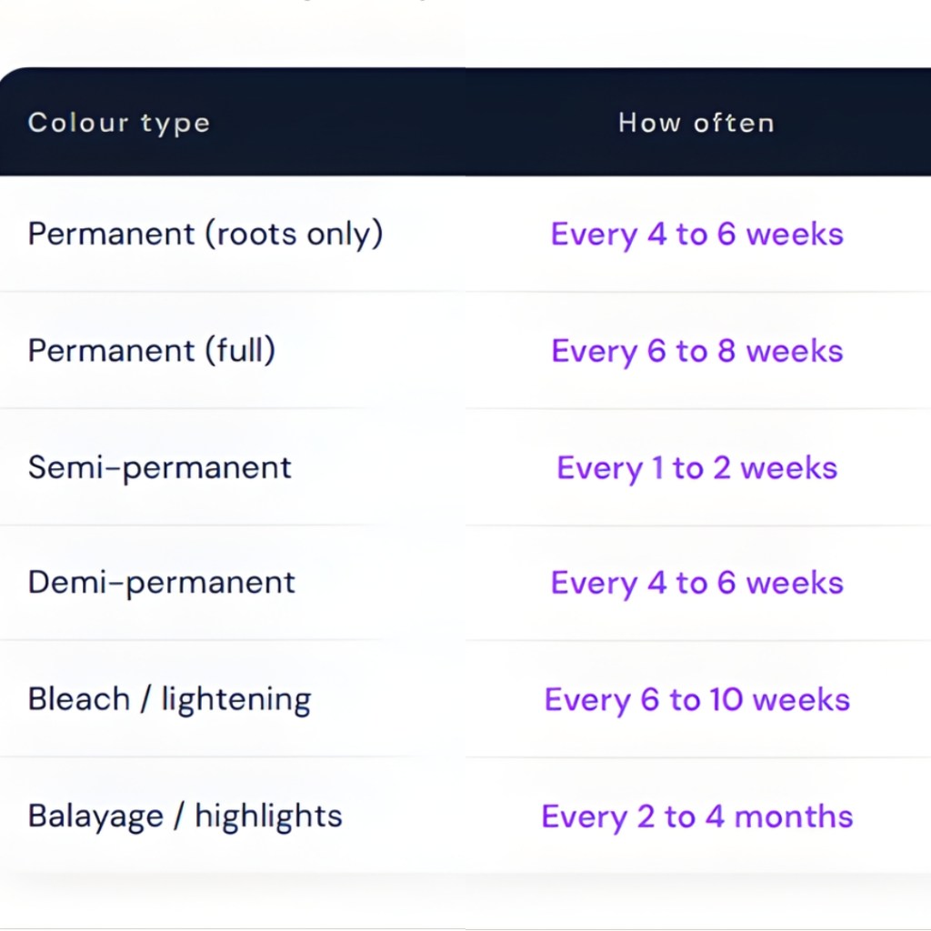 The general rule: every 4 to 8 weeks, but this varies significantly based on the type of colour treatment. The most important thing to understand is that over-colouring causes real structural damage.