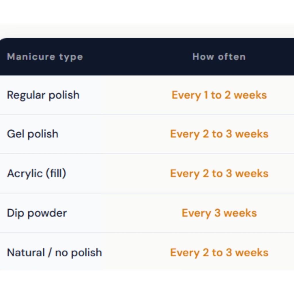 The professional recommendation: every 2 to 3 weeks for most people. It is generally advisable to schedule a professional manicure every 2 to 3 weeks to maintain nail health and aesthetics, because this interval supports proper cuticle care, prevents hangnails, and keeps nails shaped before they grow unevenly.